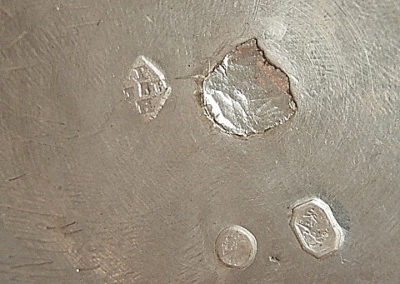 Gestempelt auf der Deckelinnenseite sowie am Korpus mit Garantie- und Meistermarke.