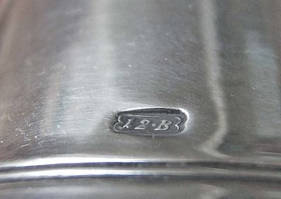 Der Repunzierungsstempel „12 B“ beagt, dass der Becher in Prag (dafür steht das B) 1806/1807 steuerlich belastet wurde. Die 12 besagt keinesfalls das es sich um 12 lötiges Silber handelt, sondern für jedes Lot Silbergewicht mussten 12 Kreuzer Steuern bezahlt werden.