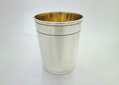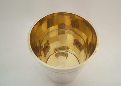 Leicht konische Form mit profiliertem Lippenrand. Relativ dickwandig gearbeiteter Silberbecher aus der zweiten Hälfte des 17. Jahrhunderts mit vorzüglicher Innenvergoldung und einer Top Erhaltung.