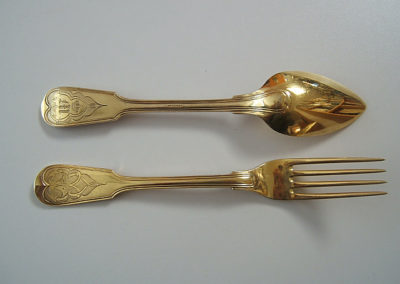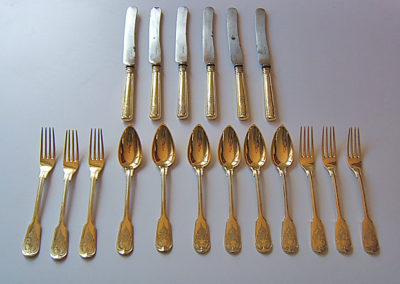 18 teilige Besteckgarnitur für Prinzessin Marie Friederike Charlotte von Württemberg (geb am 30. Oktober 1816 in Stuttgart, gest. am 4. Januar 1887 ebenda), spätere Gräfin von Neipperg war die erste Tochter des Württembergischen Königs Wilhelm I mit Königin Katharina Pawlowna