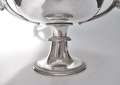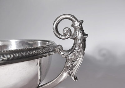 Seitliche ohrenförmige Griffe mit reliefierten Blattwerk.