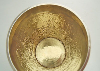 Sehr schöne, zitronenhelle originale Feuervergoldung auf der Innenseite. Am Lippenrand Monogrammgravur: G.M.G.W.