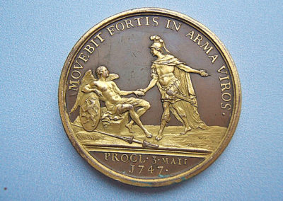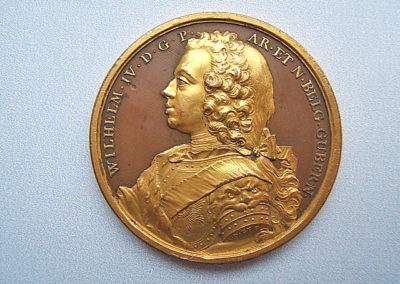 Beschriftet: WILHELM. IV GD AR. UND N. BELG. GUBERN.  Signiert: D. ET F. Rückseitig: MOVEBIT FORTIS IN ARMA VIROS. Unten: PROCL. 3. MAII/J747