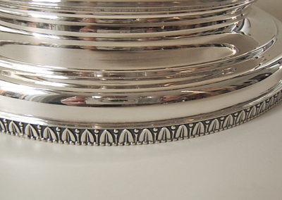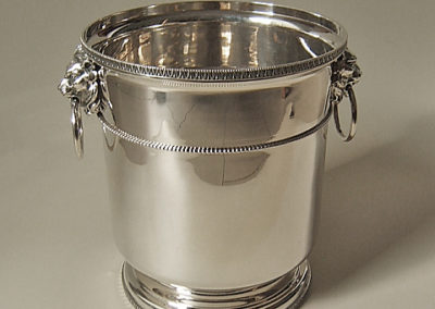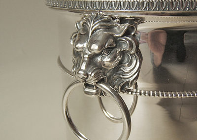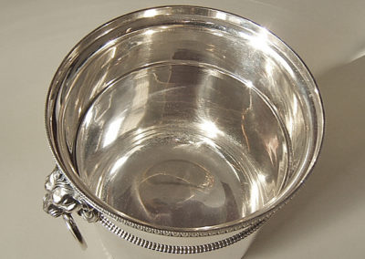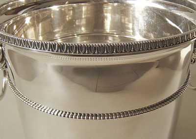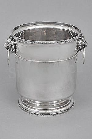 Exzellente Verarbeitung und bestechendes Design zeichnet diesen großen Sektkühler aus. Gefertigt aus 925 Silber in Schwäbisch Gmünd, im Stile des Empire.