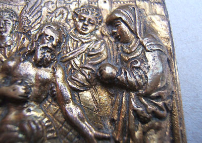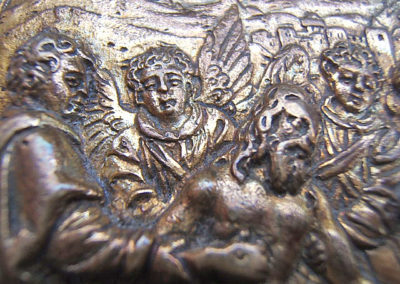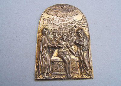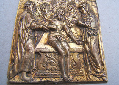 Vollvergoldete Renaissance-Bronzeplakette. Darstellung Grablegung Christi.
