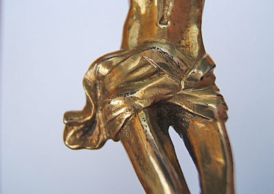 Bohrlöcher an Händen und Füßen. Sonst sehr gut erhalten. Minimaler Goldabrieb.