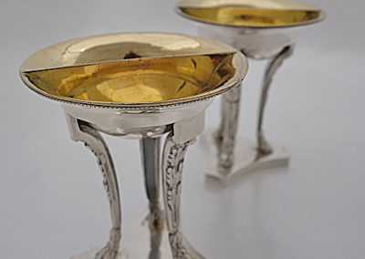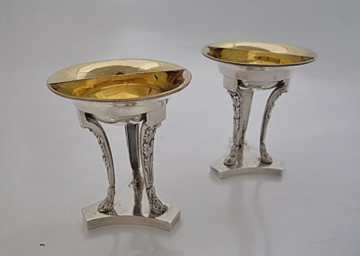 Relativ schwer gearbeitetes Paar Salzschalen von einem der besten Meister seiner Zeit.