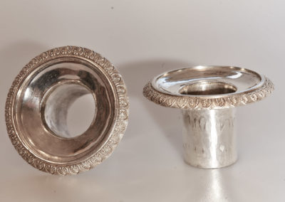 Beide Leuchter und Einstecktüllen sind identisch gestempelt mit der Meistermarke und den Garantiezeichen,